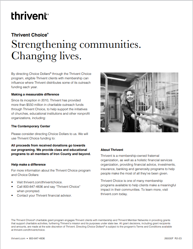 Mark your calendar! December 2, 2025, is #GivingTuesday. How will you give? This year, the Contemporary Center's goal is to raise $500 to help us continue the work we do to enrich, inspire and create in the Crystal Falls Community.